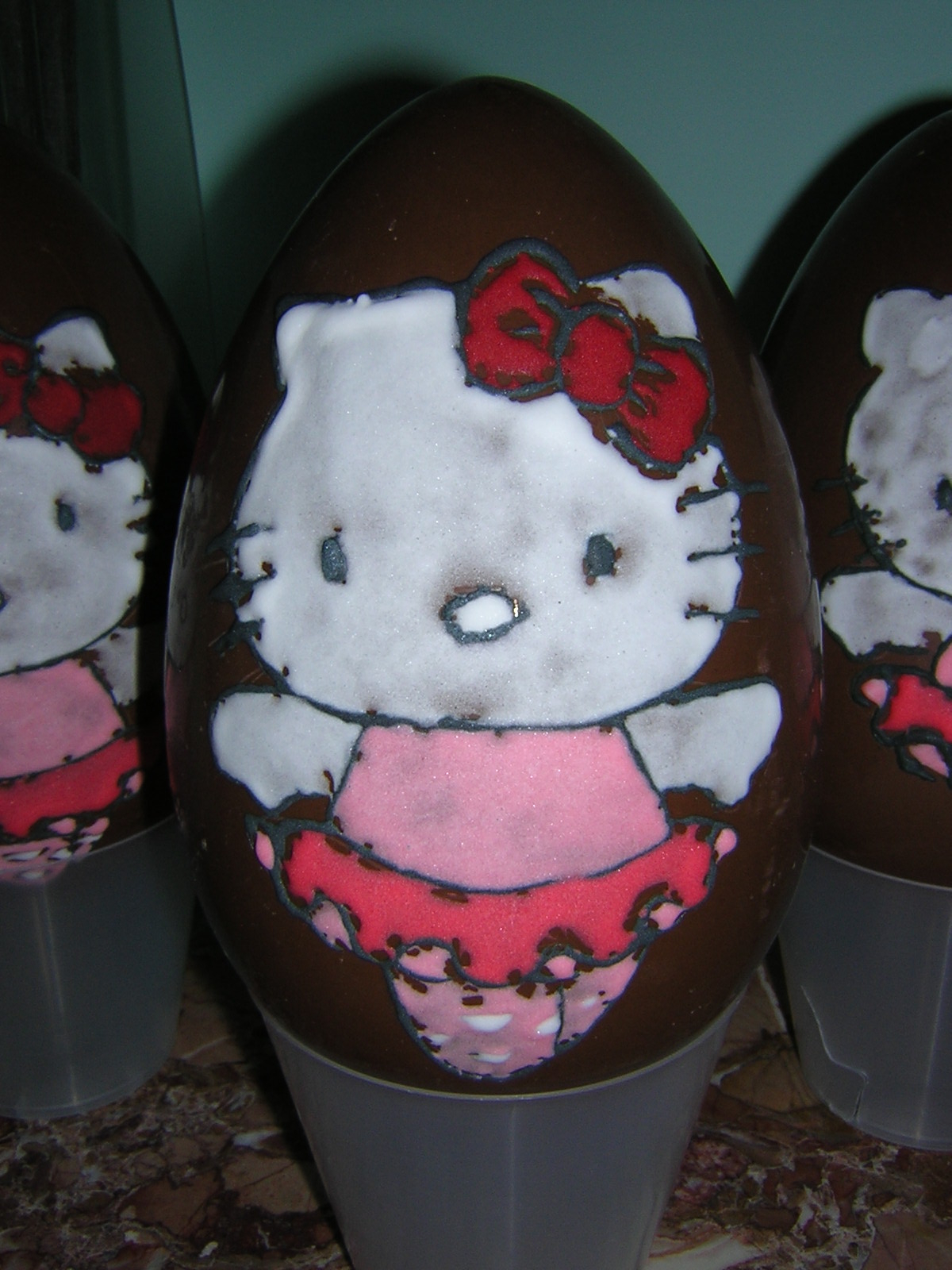 Ecco le uova che oggi ho regalato alle mie nipotine. Essendo 3 future ballerine ho pensato ad una ormai vista e rivista hallo kitty, versione ballerina appunto, e per evitare litigi ho preferito farle uguali. Che ne dite?